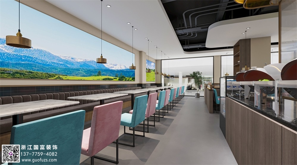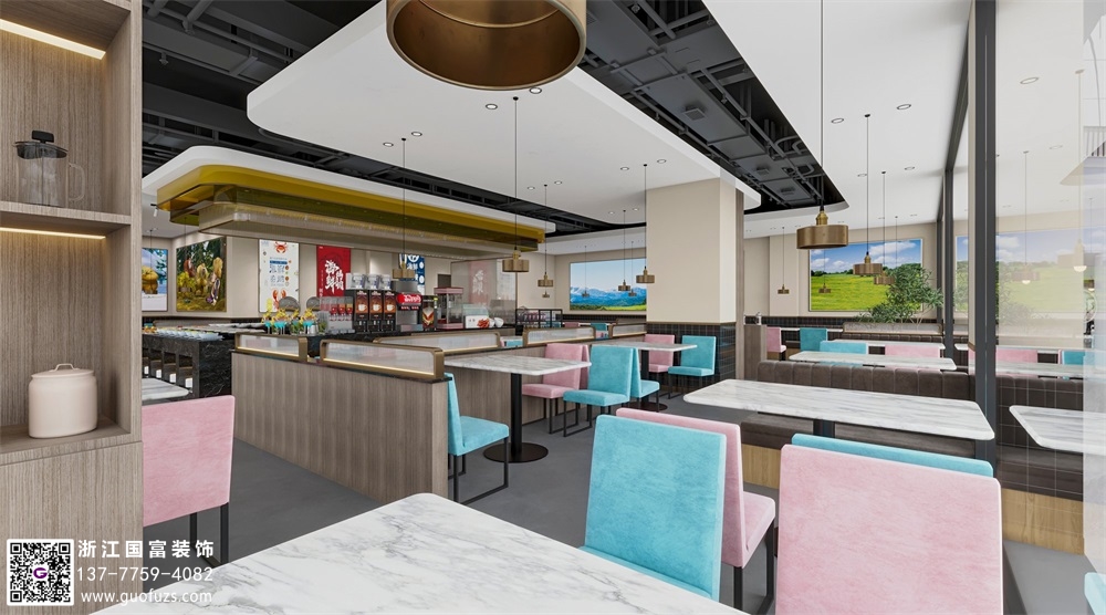 清新簡約風自助餐廳裝修效果圖