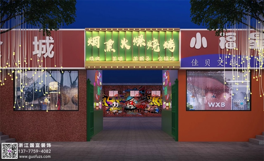 國潮風燒烤店裝修設計案例效果圖